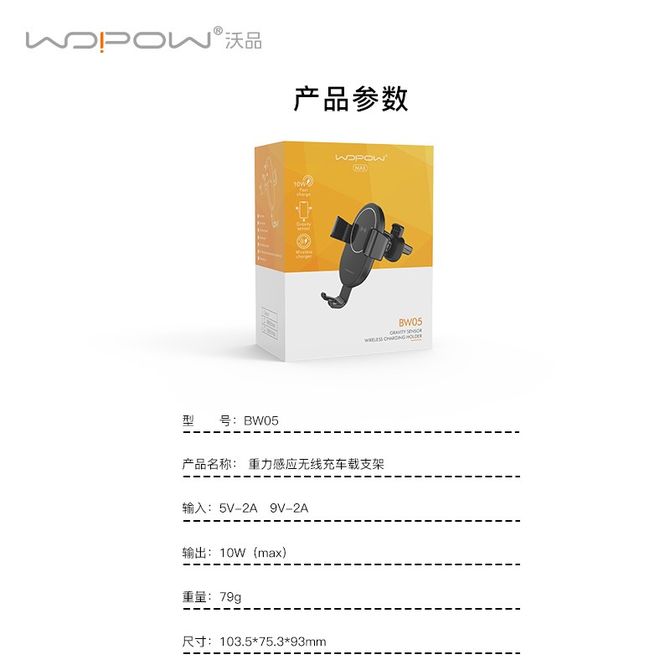 沃品 重力感应无线充车载支架 BW05