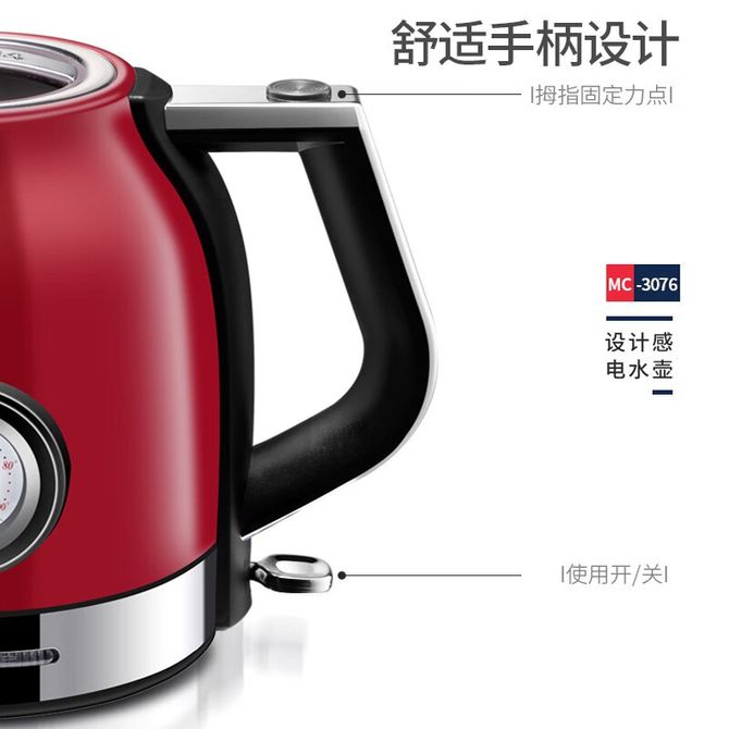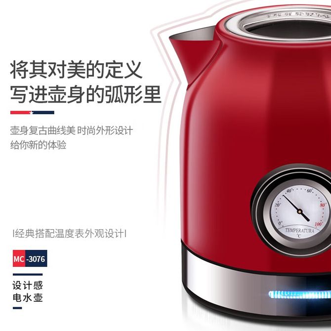 迈卡罗(MACAIIROOS)电热水壶 家用复古电水壶 带温度计烧水壶 304不锈钢开水壶 MC-3076 温度表提示 1.8L精巧容量 快速烧水 兑换价格 10600 里程 会员卡别 终身白金卡 白金卡 金卡 银卡 普通卡 儿童卡 服务 由 观脂电器 发货并提供售后 颜色: 红色 购买数量: 件 库存件 配送地址: 立即购买 加入购物车 成功添加到购物车 关闭 购物车共有 种商品 总金额为: 组合销售 产品介绍 产品规格 售后服务 产品咨询 发现好货 苏泊尔(SUPOR)电水壶 1.7L 不锈钢/YL SW-17S13A 5700 里程 志高/Chigo 电水壶烧水壶1.8L大容量电热水壶双层防烫自动断电家用烧水开水壶不锈钢 电水壶 DC-A18F 1900 里程 美的/Midea 电热水壶家用大容量烧水壶热水壶双层防烫电水壶304不锈钢内胆自动断电分离式拔盖 MK-SH15X1-102 3000 里程 小熊/Bear 电水壶家用烧水壶 不锈钢自动断电恒温热水壶保温一体电热水壶1.5L容量 3500 里程 小熊/Bear 烧水壶电水壶热水壶电热水壶开水壶304不锈钢内胆双层防烫1.5L大容量ZDH-Q15U8 3000 里程