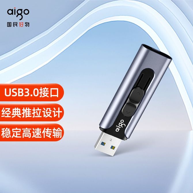 爱国者(aigo)高速U盘 防尘手机电脑两用简约办公时尚推拉商务U盘金属迷你创意U盘USB3.0 单个标配64G U335