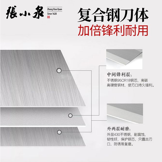 张小泉 菜刀铭匠系列复合钢桑刀 家用刀具厨房切菜刀 刀具菜刀 桑刀D50867200