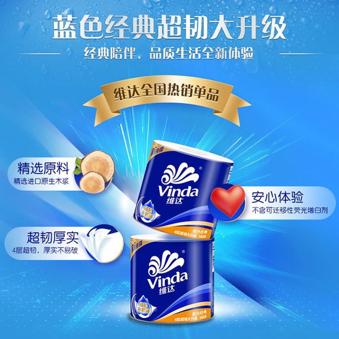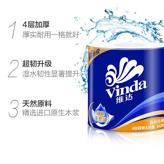 维达(Vinda)蓝色经典有芯卷纸卫生纸巾家用整箱 140g*27卷/箱 V4069 原生木浆 绿色造纸 健康安全 兑换价格 5000 里程 会员卡别 终身白金卡 白金卡 金卡 银卡 普通卡 儿童卡 服务 由 上海耀嬉网络科技有限公司 发货并提供售后 包装数量: 箱 购买数量: 件 库存件 配送地址: 立即购买 加入购物车 成功添加到购物车 关闭 购物车共有 种商品 总金额为: 组合销售 产品介绍 产品规格 售后服务 产品咨询 发现好货 维达 Vinda 卷纸 140g/卷*10卷 蓝色经典3层卫生纸 1300 里程 心相印抽纸 茶语丝享系列 量贩家庭装 3层*100抽*4包(茶香 压花) 1100 里程 心相印 经典系列 二层面巾纸 180抽*6包*1提 1100 里程 维达Vinda 超韧系列抽纸(3层*130抽*6包) 原生木浆卫生餐巾纸婴儿面巾纸 6包优惠装 1100 里程 心相印抽纸茶语丝享系列3层130抽面巾纸*6包纸巾 1300 里程