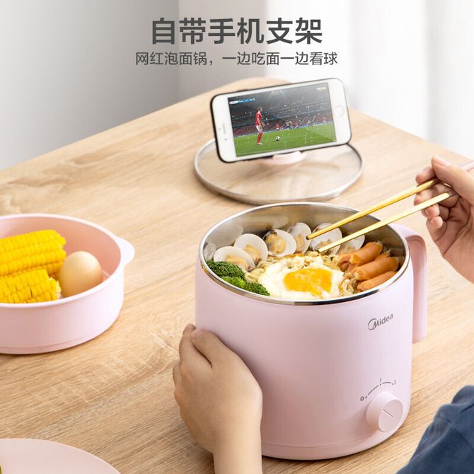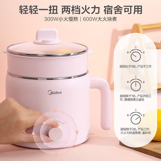 美的(Midea)电火锅 多功能锅迷你小蒸锅 低功率双层学生宿舍智能断电煮蒸一体锅1.2L容量 DY16Easy102