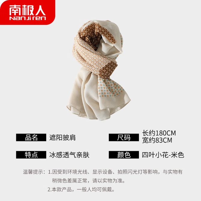 南极人女士披肩围巾N2E3X837332 轻薄透气舒适 兑换价格 2200 里程 会员卡别 终身白金卡 白金卡 金卡 银卡 普通卡 儿童卡 服务 由 斐歆时尚专卖店 发货并提供售后 颜色: 米色 购买数量: 件 库存件 配送地址: 立即购买 加入购物车 成功添加到购物车 关闭 购物车共有 种商品 总金额为: