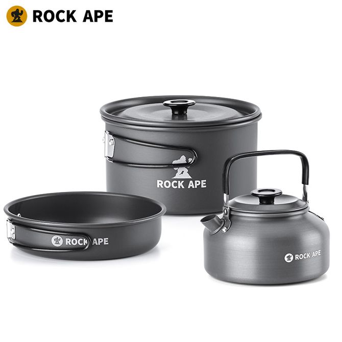 洛克猩球RockApe便携铝锅户外露营高级套锅野营便携野炊锅具户外(汤锅、煎盘、烧水壶)RACS001