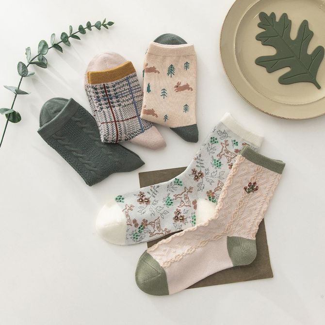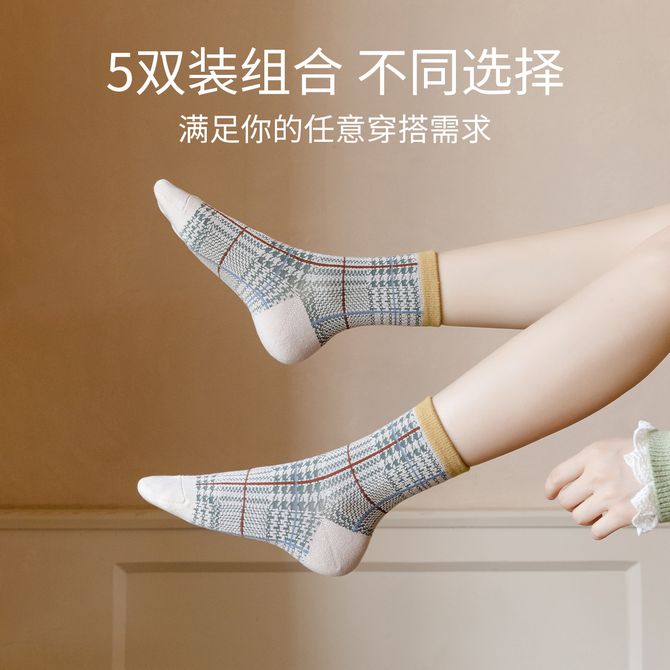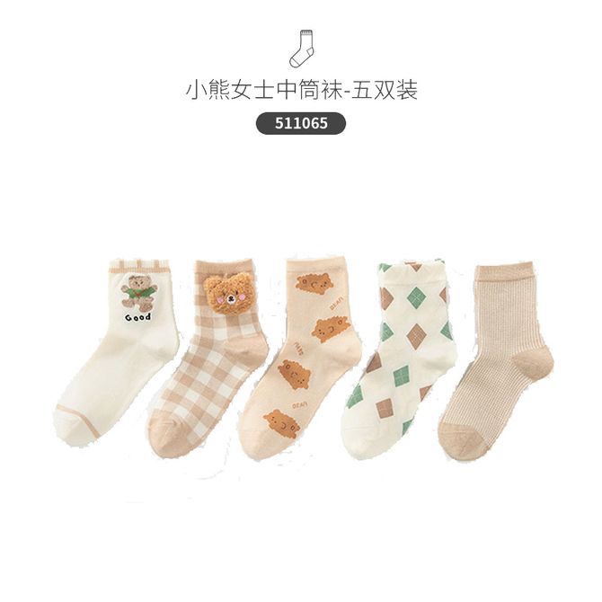 caramella卡拉袜子女中筒袜秋冬棉袜诸暨春秋女袜秋季女士长袜秋长筒潮冬五双装【棉柔舒适】小熊
