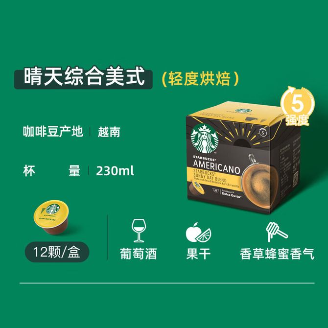 星巴克多趣酷思胶囊咖啡12粒晴天综合美式黑咖啡轻度烘焙英国进口