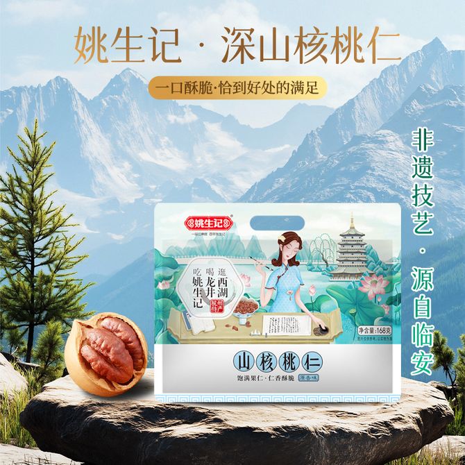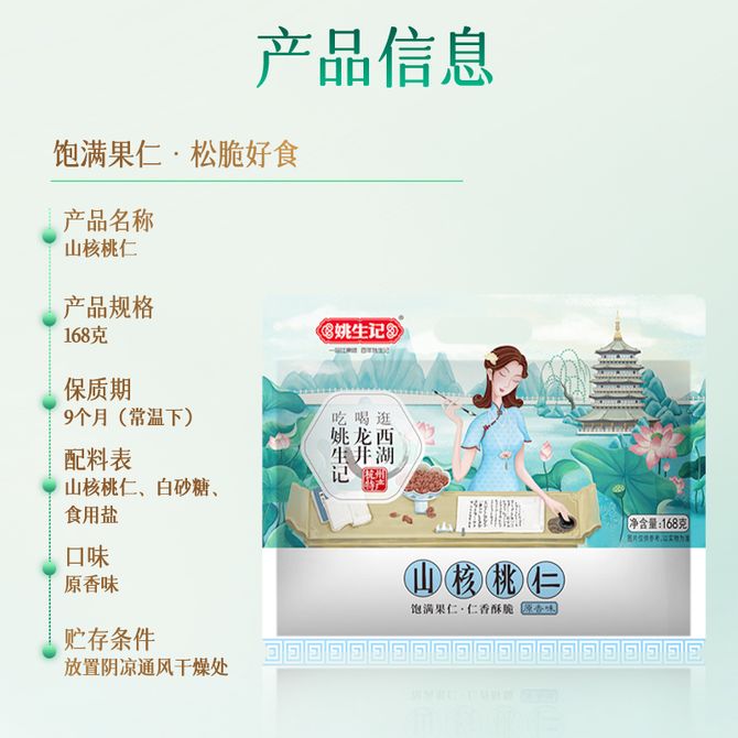 姚生记原香味山核桃仁168g免剥壳休闲零食小吃干果仁炒货杭州临安特产