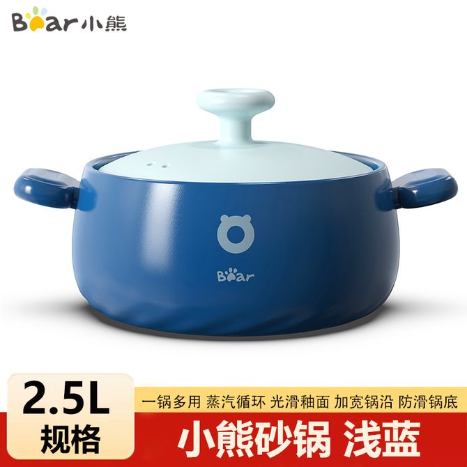 小熊 伊万 砂锅 浅蓝2.5L 汤锅耐高温干烧不裂小沙锅宽口炖锅燃气灶陶瓷锅CP-G0026-P01