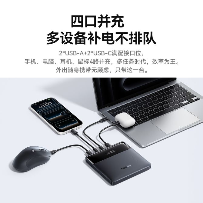 倍思/Baseus 100W数显移动电源 笔记本电脑充电宝四口输出快充 20000毫安适用苹果华为苹果小米手机笔记本电脑