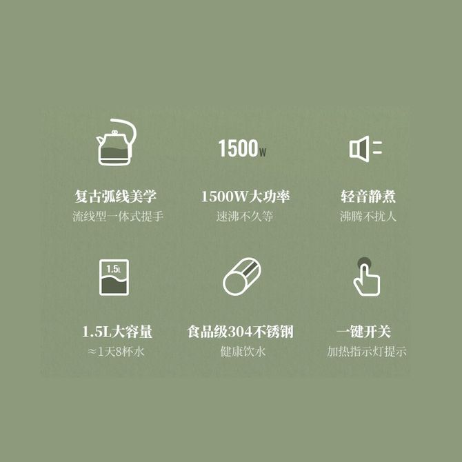 奥克斯/AUX 304不锈钢电水壶热水壶 1.5L大容量电热水壶复古烧水壶浅绿HX-A1525 一体式把手 1.5L大容量 304不锈钢 一键开关 轻音静煮 兑换价格 5200 里程 会员卡别 终身白金卡 白金卡 金卡 银卡 普通卡 儿童卡 服务 由 存悦商贸 发货并提供售后 颜色: 绿色 购买数量: 件 库存件 配送地址: 立即购买 加入购物车 成功添加到购物车 关闭 购物车共有 种商品 总金额为: