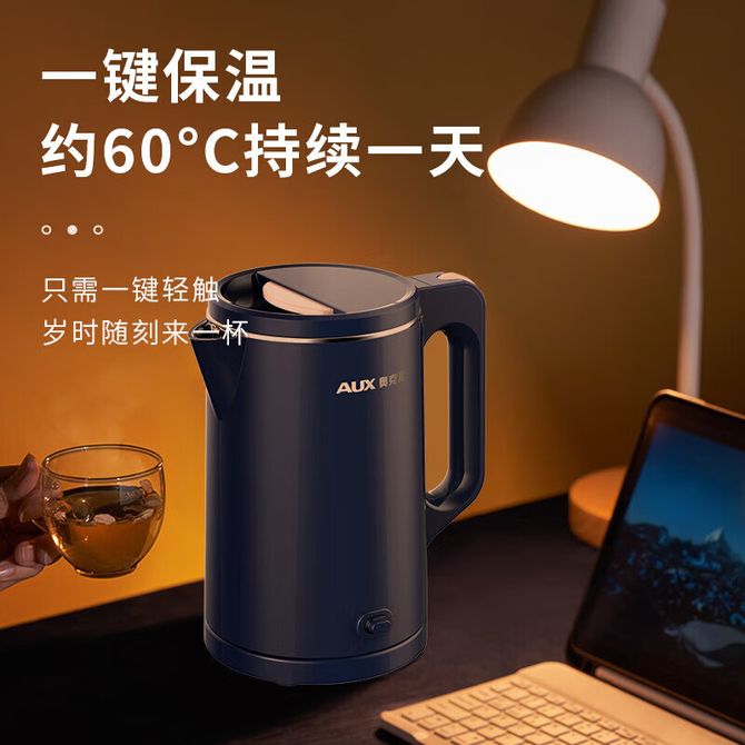 奥克斯/AUX 电水壶 HX-A1507B 一键恒温 双层防烫壶身 304不锈钢内胆 1.5L