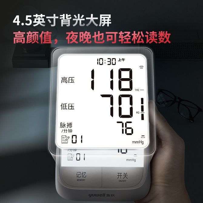 鱼跃/yuwell 电子血压计臂式精准家用血压测量仪全自动测压语音播报YE666A背光款