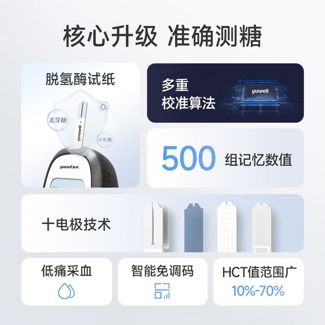 鱼跃/yuwell 血糖仪660家用测试仪高精准孕妇测血糖试纸的仪器血糖仪+50(试纸+采血针+酒精棉)