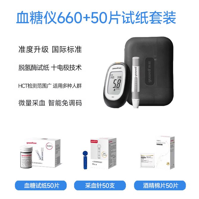 鱼跃660血糖仪+50(试纸+采血针+酒精棉)