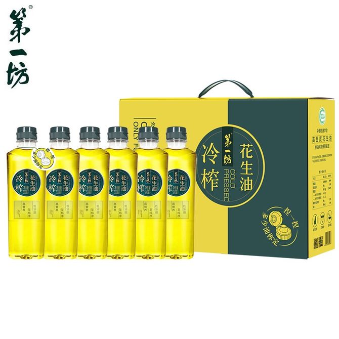 第一坊 冷榨花生油 一级家用食用油 低油烟 纯正花生油物理压榨 不撒不漏可控油瓶系列 500ml*6瓶盒装
