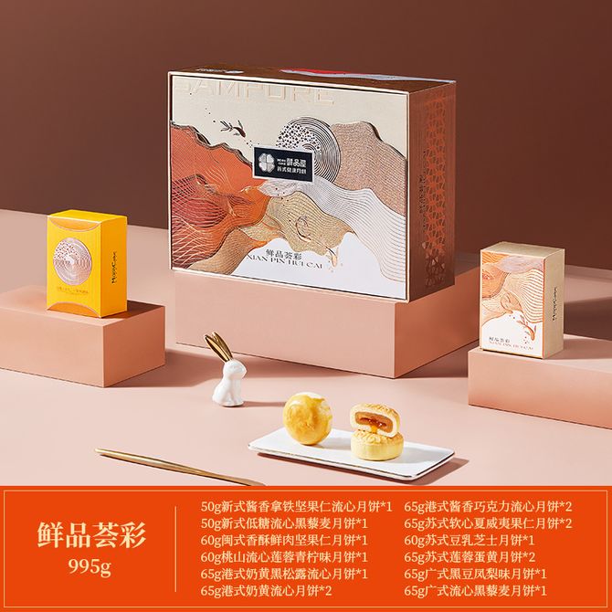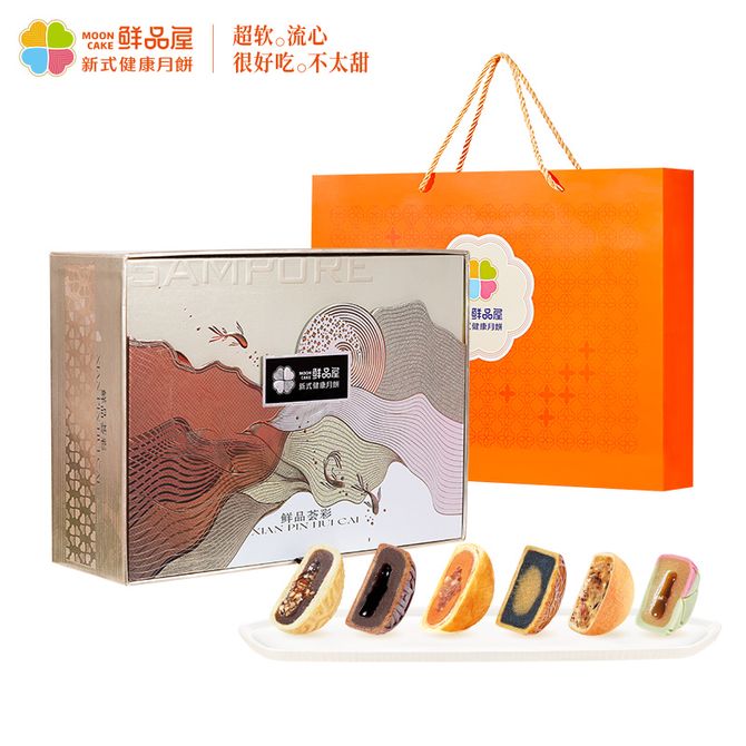 鲜品屋SAMPURE 995g鲜品荟彩礼盒中秋节月饼礼盒送礼新式健康月饼
