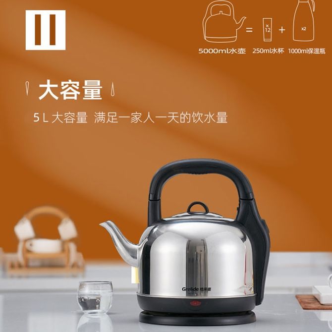 格来德/Grelide 电热水壶大容量烧水壶5L煮水壶开水壶煮茶壶 5001S 自动断电 兑换价格 5200 里程 会员卡别 终身白金卡 白金卡 金卡 银卡 普通卡 儿童卡 服务 由 酷宝电器专营店 发货并提供售后 颜色: 银色 购买数量: 件 库存件 配送地址: 立即购买 加入购物车 成功添加到购物车 关闭 购物车共有 种商品 总金额为: 组合销售 产品介绍 产品规格 售后服务 产品咨询 发现好货 苏泊尔(SUPOR)电水壶 1.7L 不锈钢/YL SW-17S13A 5700 里程 志高/Chigo 电水壶烧水壶1.8L大容量电热水壶双层防烫自动断电家用烧水开水壶不锈钢 电水壶 DC-A18F 1900 里程 美的/Midea 电热水壶家用大容量烧水壶热水壶双层防烫电水壶304不锈钢内胆自动断电分离式拔盖 MK-SH15X1-102 3000 里程 小熊/Bear 电水壶家用烧水壶 不锈钢自动断电恒温热水壶保温一体电热水壶1.5L容量 3500 里程 小熊/Bear 烧水壶电水壶热水壶电热水壶开水壶304不锈钢内胆双层防烫1.5L大容量ZDH-Q15U8 3000 里程