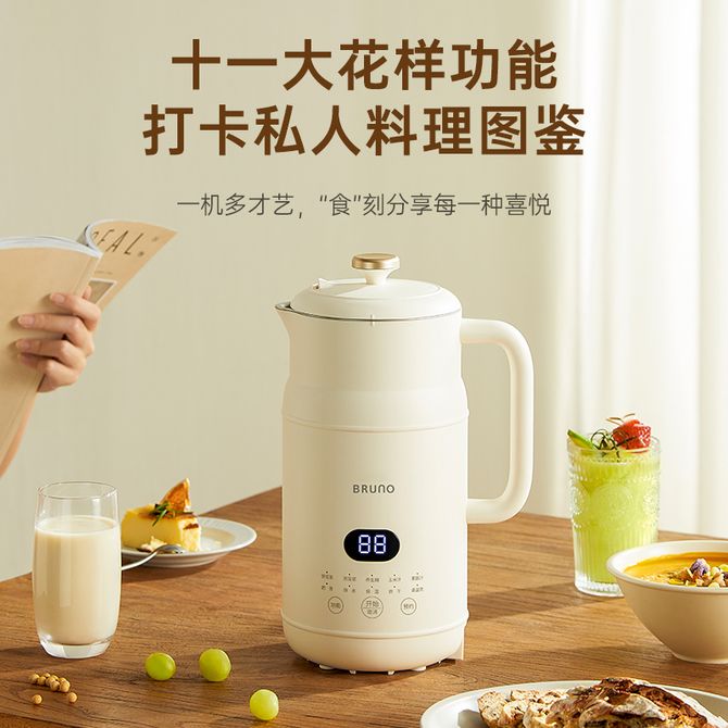BRUNO 1L破壁豆浆机 家用多功能免过滤预约料理机果蔬汁榨汁机果汁机早餐机米糊辅食机养生壶搅拌机破壁机BZK-DJ04(升级款)珍珠白