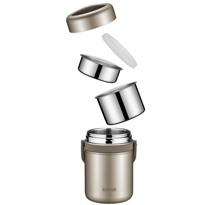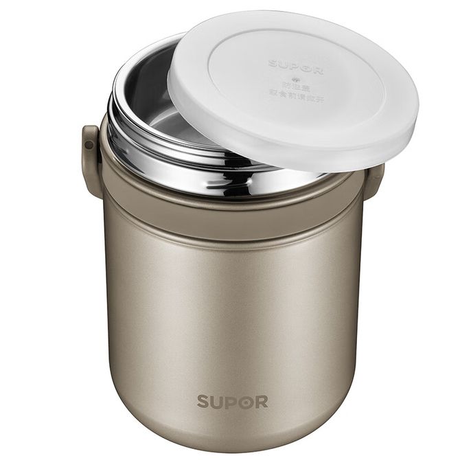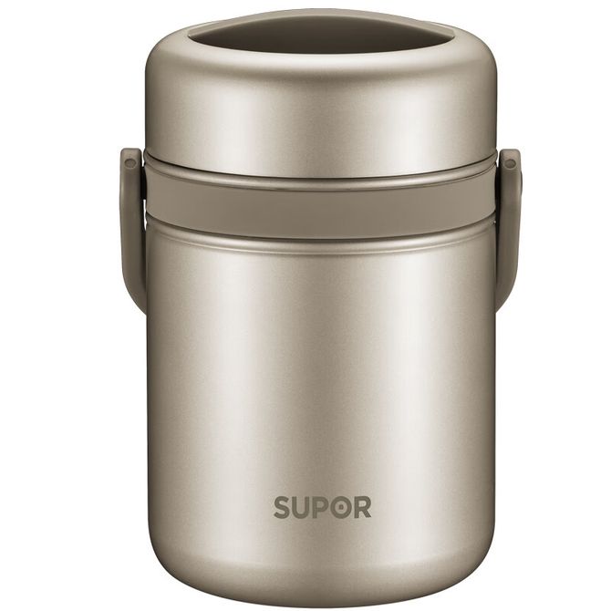 苏泊尔(SUPOR) 饭盒 便当盒高汤宝系列304不锈钢密封保温提锅1.5L香槟金 KF15A7