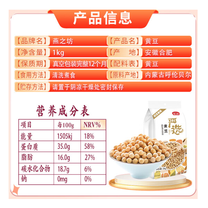 燕之坊 黄豆 1kg可发豆芽打豆浆东北大豆五谷杂粮 黄豆 1kg 兑换价格 1300 里程 会员卡别 终身白金卡 白金卡 金卡 银卡 普通卡 儿童卡 服务 由 美味思食品店 发货并提供售后 规格: 袋装 购买数量: 件 库存件 配送地址: 立即购买 加入购物车 成功添加到购物车 关闭 购物车共有 种商品 总金额为: 组合销售 产品介绍 产品规格 售后服务 产品咨询 发现好货 岚海渔歌(LANHAIYUGE) 金钩海米虾米干货非特级无盐新鲜开洋虾皮海虾米干虾仁干250g 1900 里程 十月稻田 红枸杞子250g半斤特级干枸杞泡水煲汤煮粥食材 1100 里程 岚海渔歌 金钩海米250g虾米干货 1900 里程 十月稻田 新疆灰枣500g一等灰枣新疆特产小红枣零食煲汤煮粥干货 1100 里程 十月稻田 东北黑木耳 150g肉厚无根干木耳黑龙江东宁特产 火锅炒菜凉拌 6970093763042 1100 里程