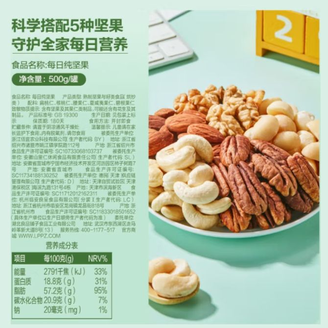 组合销售 产品介绍 产品规格 售后服务 产品咨询 发现好货 西域美农 新疆薄皮核桃500g/袋 新疆特产原味 薄皮核桃 1300 里程 西域美农 烘焙腰果200g 坚果特产 休闲零食 带皮腰果仁 1600 里程 味滋源 紫皮腰果2袋装 每袋100g 1100 里程 沃隆每日坚果(A)175g盒装 1700 里程 百草味 坚果炒货夏威夷果100g*1袋 1100 里程