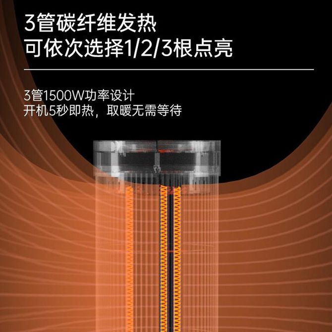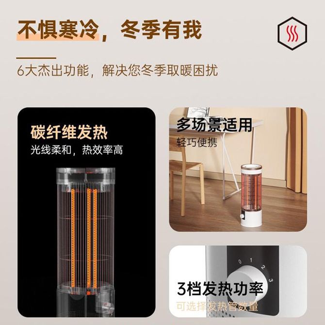柔光取暖,3档功率,即开即热,快速升温