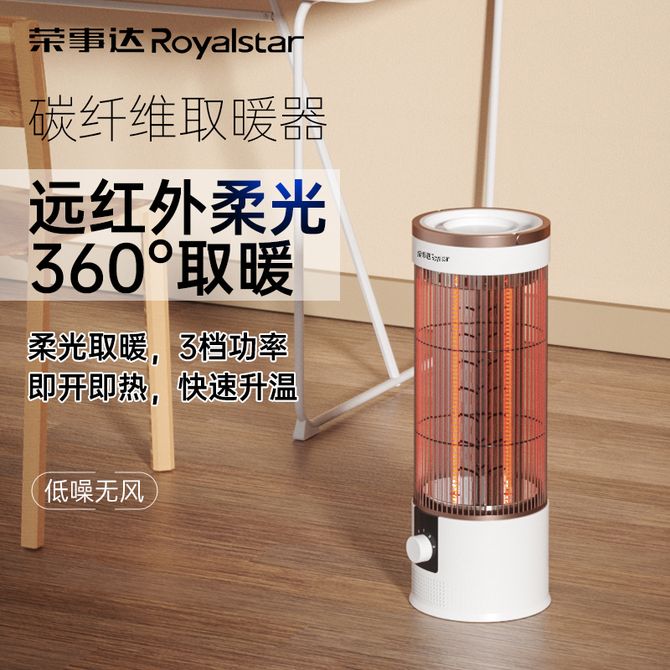 荣事达/Royalstar 炭纤维取暖器360度无死角柔光取暖3档功率即开即热快速升温低噪无风倾倒断电