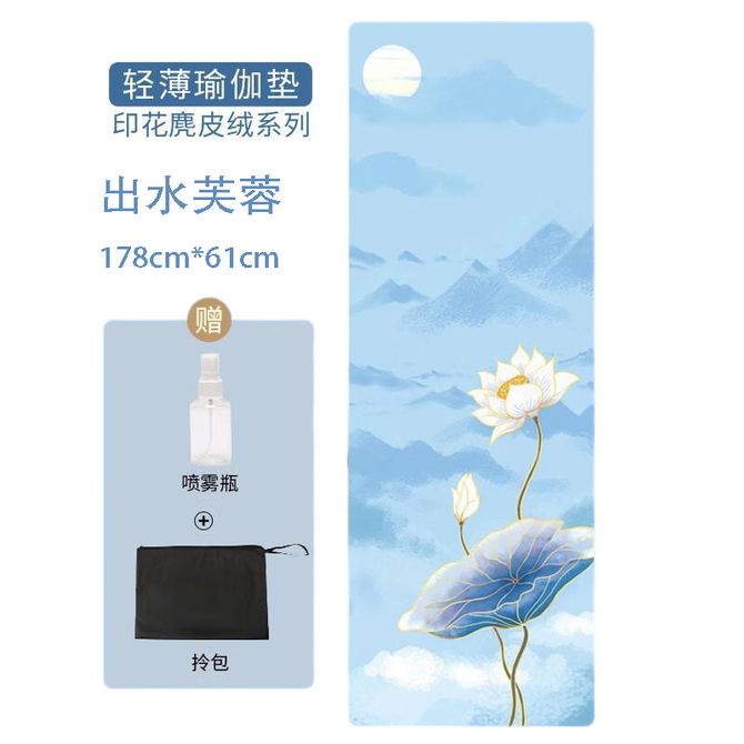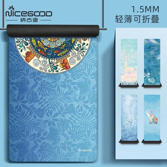 纳古迪(NiceGood) 麂皮绒可折叠瑜伽垫薄款女防滑天然橡胶轻薄便携瑜伽铺巾男舞蹈垫 新款出水芙蓉