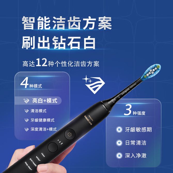 飞利浦/Philips HX9912-樱花粉/绅士黑 智能电动牙刷钻石9系Pro情侣送男士女友 充电玻璃杯充电旅行盒黑科技