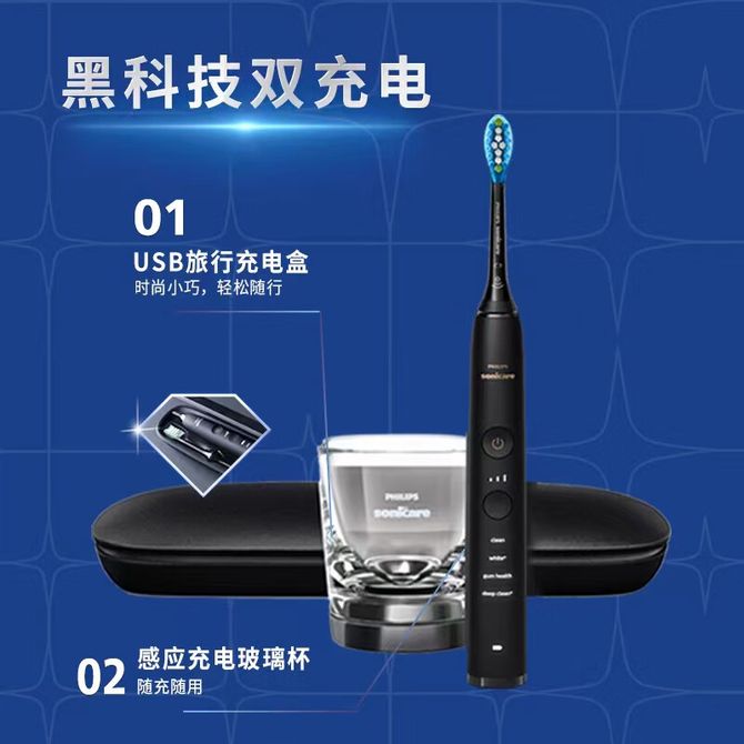 智能电动牙刷钻石9系Pro情侣送男士女友 充电玻璃杯充电旅行盒黑科技