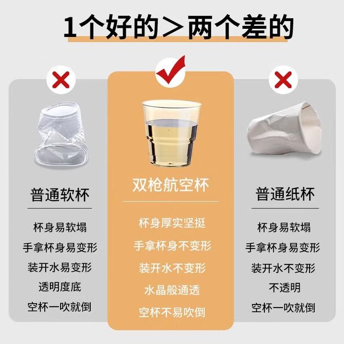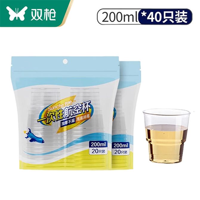 双枪(Suncha) 一次性杯子航空杯加厚硬透明啤酒塑料杯办公太空杯试饮水杯 阶梯航空杯 40只