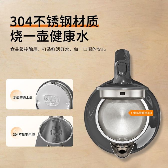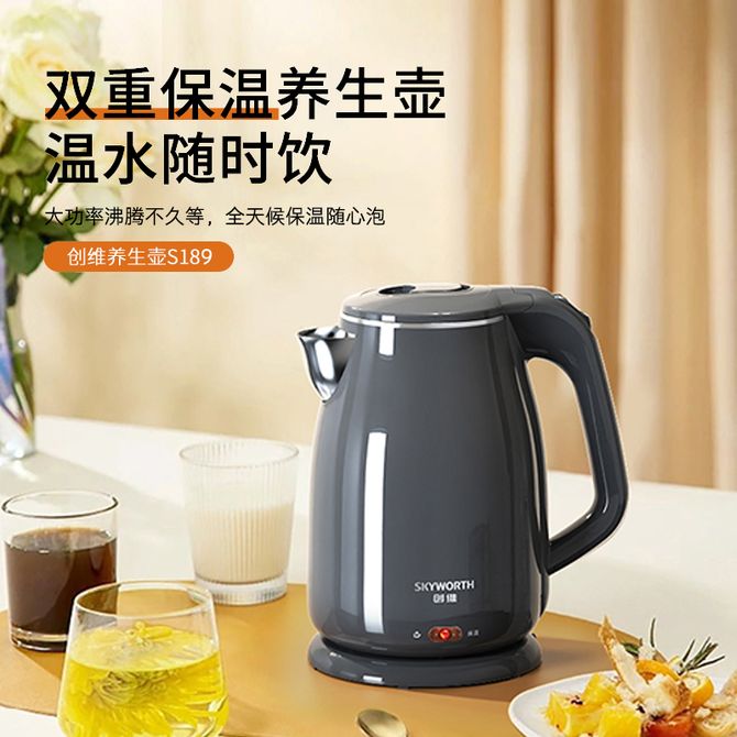 创维(SKYWORTH) 电水壶烧水壶1.8L家用大容量满足3-6人使用 304不锈钢材质使用安心