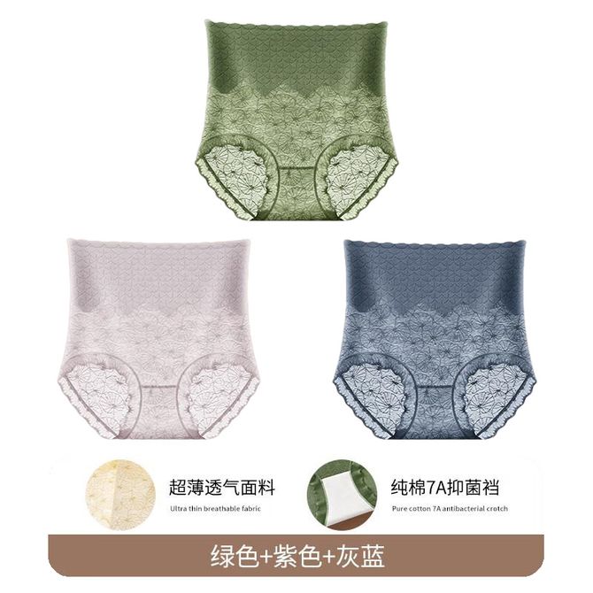 3条装高腰收腹内裤 绿色+紫色+灰蓝