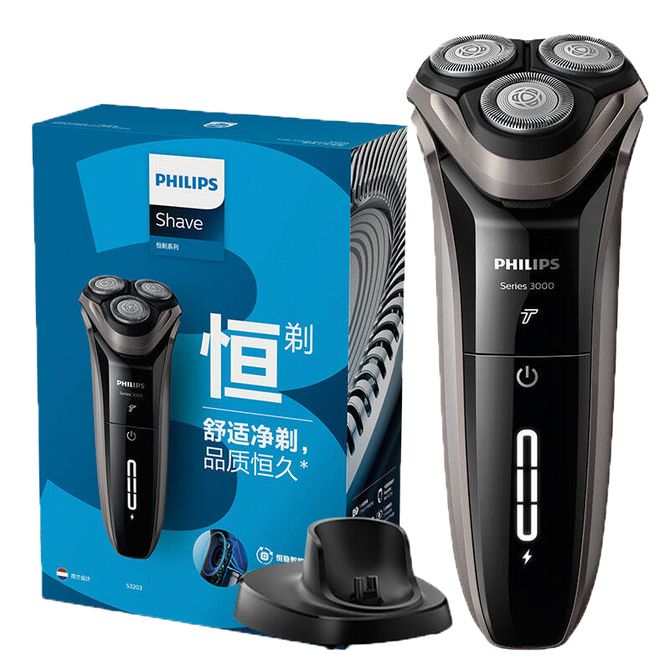 飞利浦/Philips 电动剃须刀 S3203 三刀头 全身水洗 1小时充电 男士电动干湿双剃刮胡刀电动剃须刀