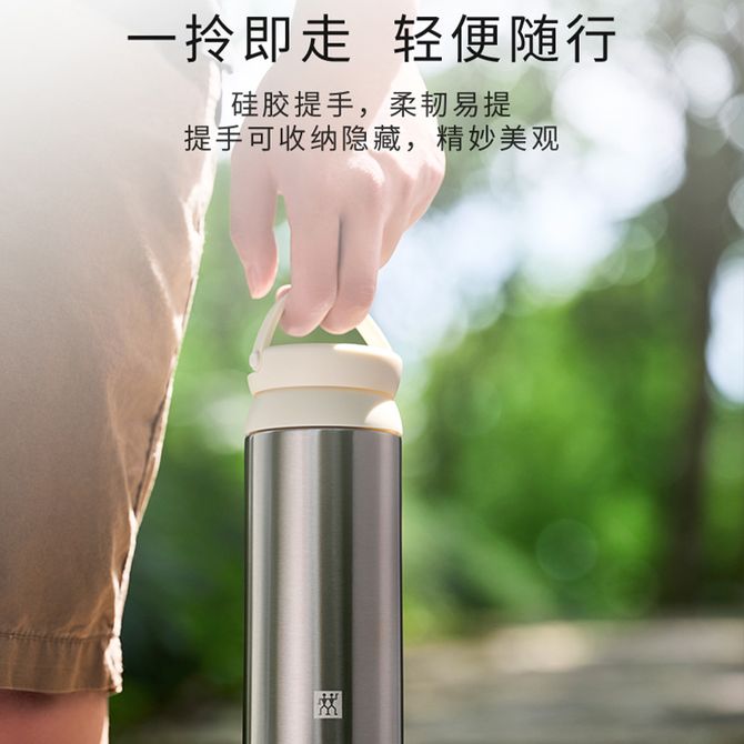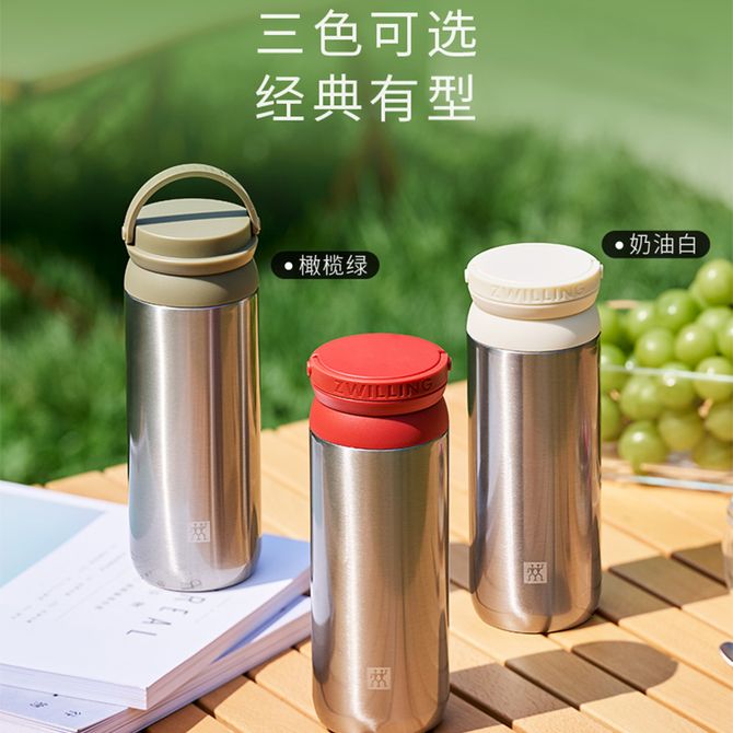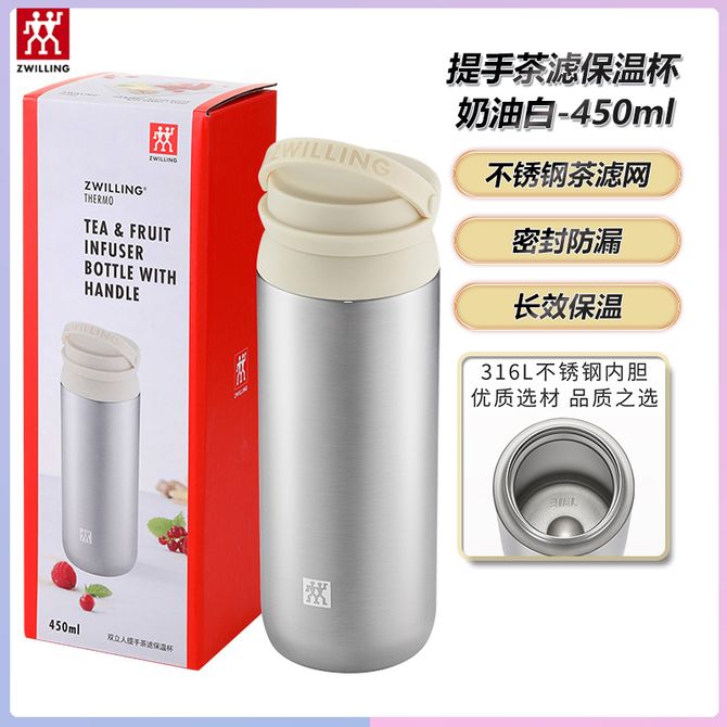 双立人(ZWILLING) 保温杯450ml 提手茶滤保温杯 316L不锈钢内胆水杯1029001奶油白