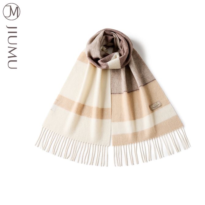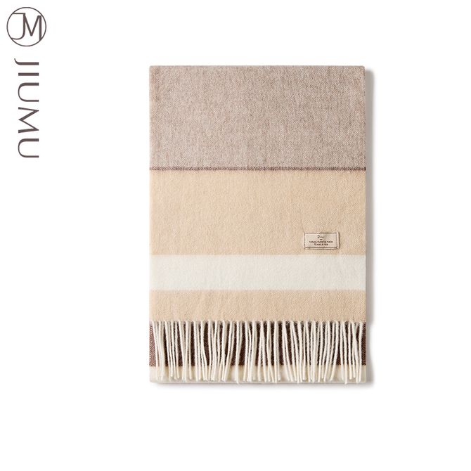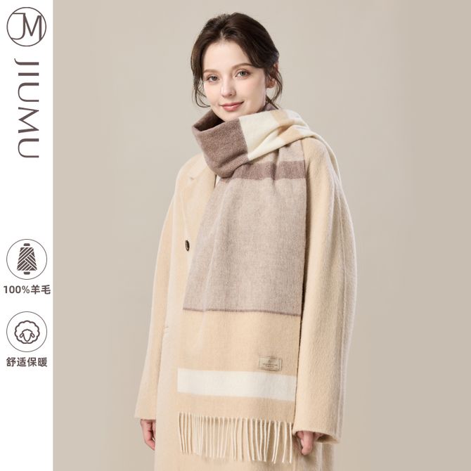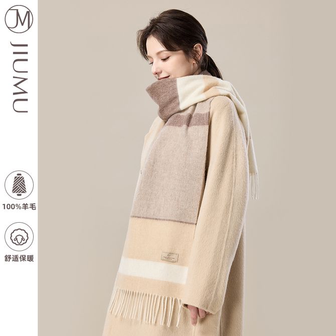 玖慕/JIUMU 纯羊毛围巾女秋冬季披肩女士保暖围脖生日圣诞礼物送女生 礼盒装 米驼色
