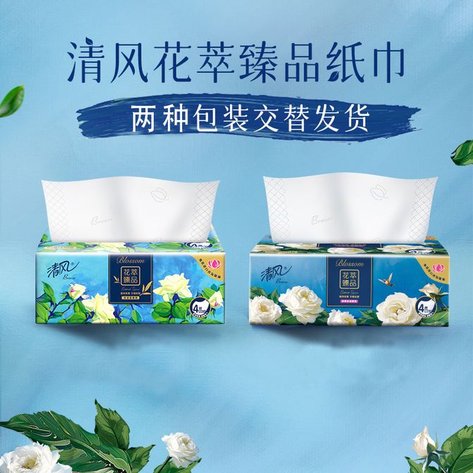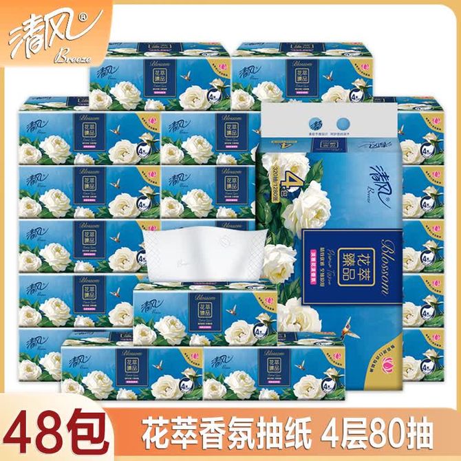 清风 花萃臻品香氛抽纸4层80抽48包