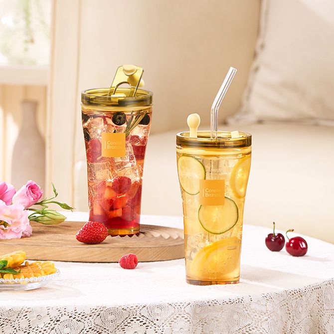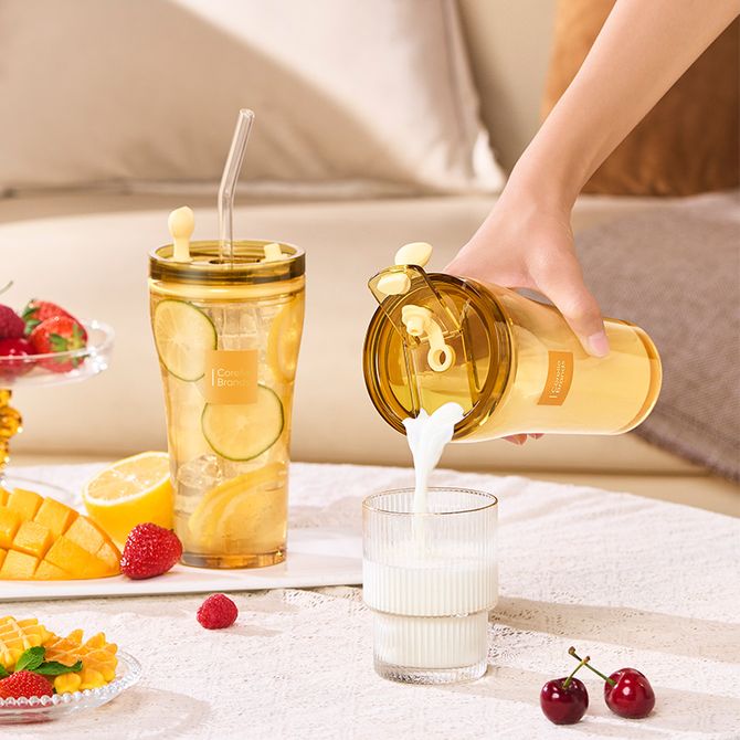 【进口Tritan材料杯盖,不含双酚A,母婴材质更安全;琥珀色高硼厚玻璃杯体,耐冷耐热不开裂,冷热皆宜】