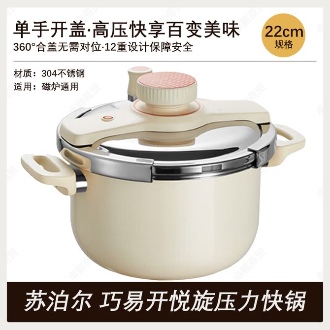 苏泊尔(SUPOR) 正品巧易开悦旋压力快锅22cm 高压烹饪锅5L高压锅压力锅炖汤锅EY223KAW3