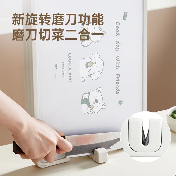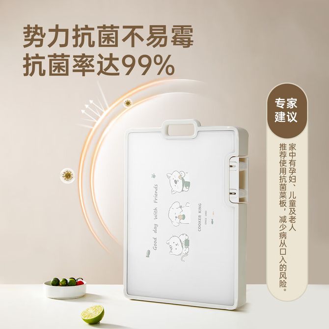炊大皇(COOKER KING) 砧板 可立包胶菜板防霉抗菌食品级防粘易清洗可磨刀 白色大号42*30*2.2 CB01SKL