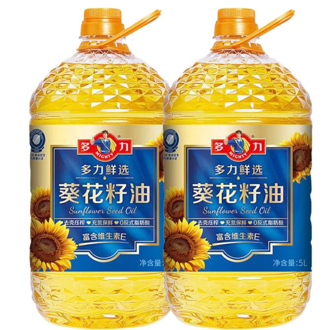 多力 Mighty 食用油鲜选葵花籽油 5L*2桶 去壳压榨/充氮保鲜/0反式脂肪酸