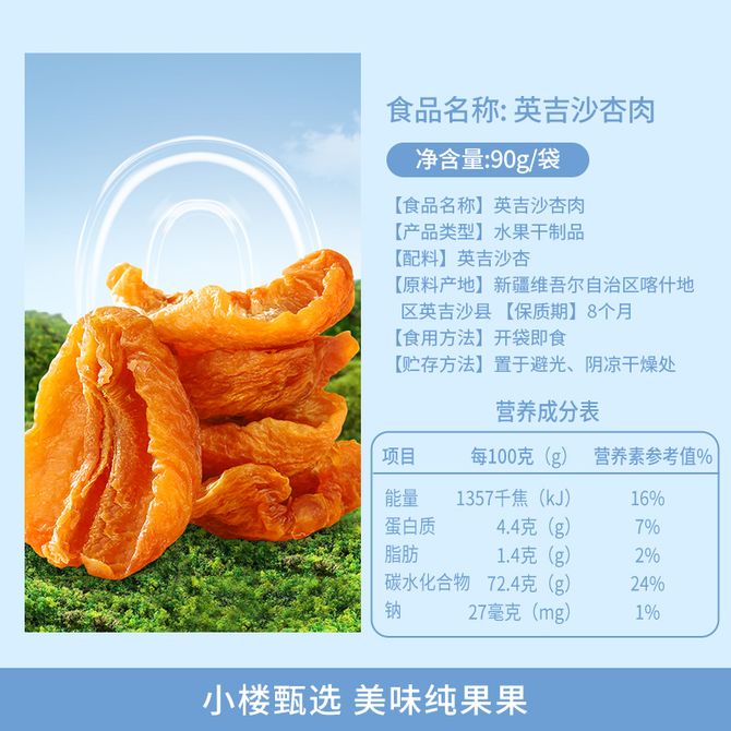 楼兰蜜语 英吉沙杏干90gx2袋无核水果干杏脯肉鲜果干