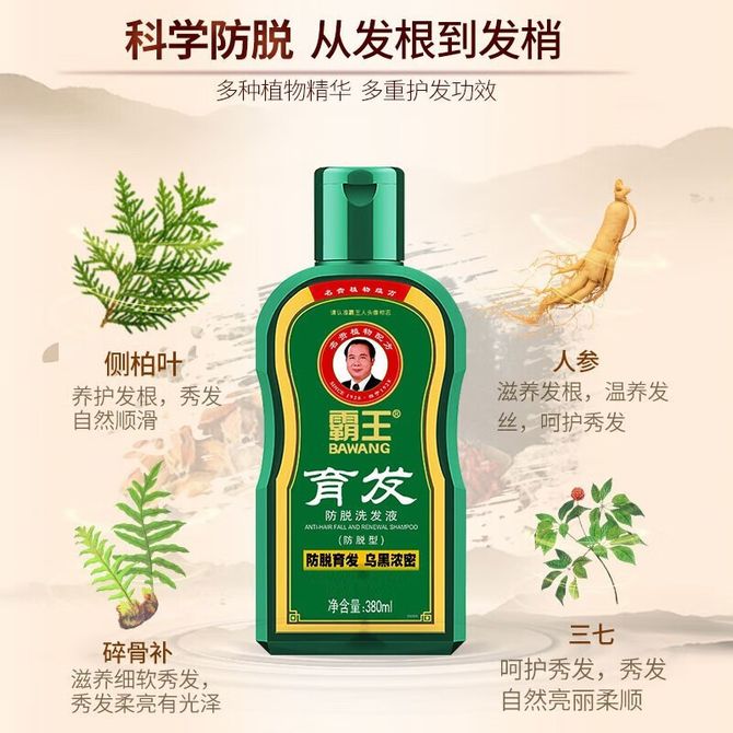 霸王/Bawang 防脱育发洗发水男女士控油蓬松老姜汁养护首乌固发柔顺滋养 育发洗发水 380ml*1瓶 380ml霸王育发防脱洗发液(防脱型) 兑换价格 1900 里程 会员卡别 终身白金卡 白金卡 金卡 银卡 普通卡 儿童卡 服务 由 鑫侪个护化妆专营店 发货并提供售后 化妆品容量: 380g/ml 购买数量: 件 库存件 配送地址: 立即购买 加入购物车 成功添加到购物车 关闭 购物车共有 种商品 总金额为: