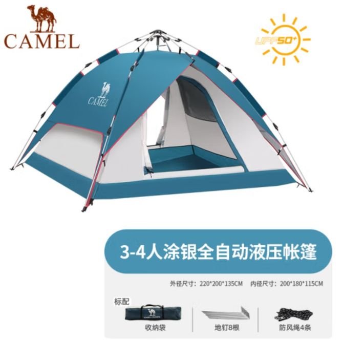 骆驼/Camel 户外液压帐篷全自动弹开野餐涂银防晒防雨露营帐湛蓝