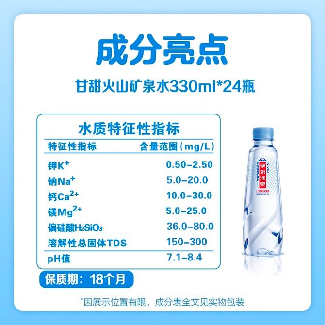 伊利 伊刻活泉弱碱性天然矿泉水饮用水330ml*24瓶