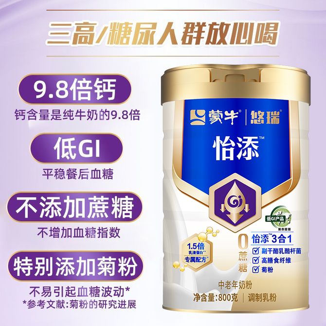 组合销售 产品介绍 产品规格 售后服务 产品咨询 发现好货 蒙牛 铂金装 中老年奶粉400g 益生菌高钙富硒成人奶粉 便捷条装 1400 里程 蒙牛 铂金装中老年益生菌高钙富硒成人奶粉800g罐装0蔗糖营养送礼 2800 里程 蒙牛 中老年高钙低脂成人奶粉800g罐装 2400 里程 蒙牛 悠瑞 金装中老年奶粉400g 高钙富硒成人奶粉 营养冲饮 1400 里程 蒙牛 中老年低脂高钙高纤奶粉800g/罐 2500 里程