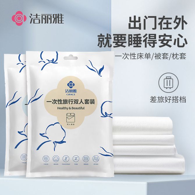 洁丽雅/Grace 旅行一次性床单被套 单人差旅床品套装 枕套*1+被套+床单 5包装 一袋齐全 出行住宿 安心旅睡 枕套+床单+被套 酒店住宿洁净无忧 兑换价格 3000 里程 会员卡别 终身白金卡 白金卡 金卡 银卡 普通卡 儿童卡 服务 由 上海鄢郢网络科技有限公司 发货并提供售后 被、单尺寸: 150*210cm 颜色: 白色 购买数量: 件 库存件 配送地址: 立即购买 加入购物车 成功添加到购物车 关闭 购物车共有 种商品 总金额为: 组合销售 产品介绍 产品规格 售后服务 产品咨询 发现好货 九洲鹿 无印风老粗布系列床单 180*230cm 条纹蓝 1300 里程 洁丽雅(Grace)床单 加厚老粗布床单夏季双人被单单件1.5/1.8米床 200*230cm余晖 2900 里程 洁丽雅(Grace)床单 加厚老粗布被单夏季床罩单件1.5/1.8/2米床 230*250cm 余晖 3300 里程 南极人亲肤被套单件-简约牛仔蓝NBT062 2600 里程 洁丽雅(Grace)全棉床单单件 四季纯棉单人学生宿舍被单床罩 格调 1米/1.2米/1.5米床 160*230cm 2900 里程
