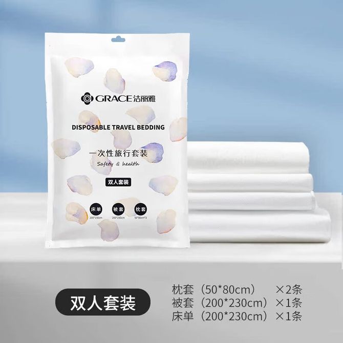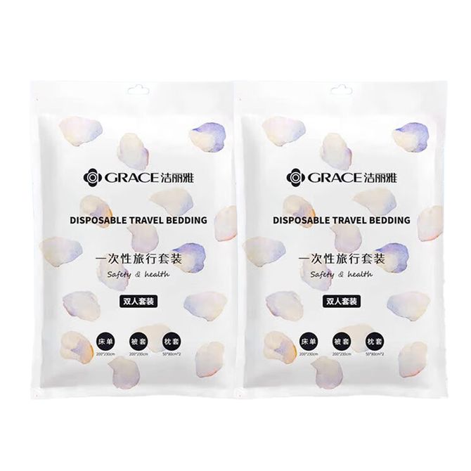 洁丽雅/Grace 旅行一次性床单被套 双人差旅床品套装 枕套*2+被套+床单 2包装