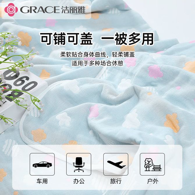 洁丽雅/Grace A类3A抗菌六层毛巾被午睡毯纯棉夏季盖毯夏凉被 彩云蓝 120*150cm JDBZ026 纯棉六层纱毛巾被(被子实际尺寸120*150cm) 兑换价格 3600 里程 会员卡别 终身白金卡 白金卡 金卡 银卡 普通卡 儿童卡 服务 由 吉时雨居家生活馆 发货并提供售后 被、单尺寸: 110*135cm 颜色: 其他 购买数量: 件 库存件 配送地址: 立即购买 加入购物车 成功添加到购物车 关闭 购物车共有 种商品 总金额为: