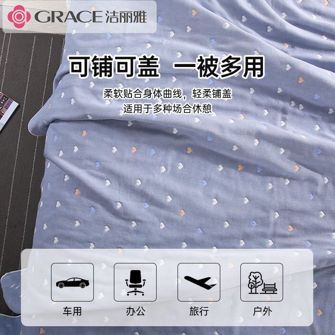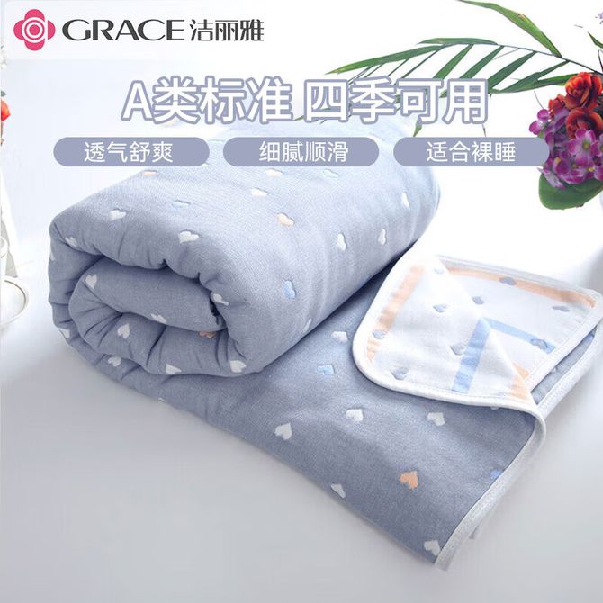 洁丽雅/Grace A类3A抗菌六层毛巾被午睡毯纯棉夏季盖毯夏凉被夏被空调被儿童被幼儿园被子 爱心灰 120*150cm JDBZ027 纯棉六层纱毛巾被(被子实际尺寸120*150cm) 兑换价格 3600 里程 会员卡别 终身白金卡 白金卡 金卡 银卡 普通卡 儿童卡 服务 由 吉时雨居家生活馆 发货并提供售后 被、单尺寸: 110*135cm 颜色: 灰色 购买数量: 件 库存件 配送地址: 立即购买 加入购物车 成功添加到购物车 关闭 购物车共有 种商品 总金额为: 组合销售 产品介绍 产品规格 售后服务 产品咨询 发现好货 洁丽雅(Grace)全棉夏凉被棉花被双人空调被 纯棉被子可机洗 薄被芯 洛洛繁花 150*200cm(Grace) 6100-7400 里程 洁帛 A类零压力抗菌防螨纤维春秋四季被 3500-3900 里程 北极绒(Bejirog) 泡泡纱大豆纤维四季被 细腻温润吸湿透气不闷不燥 BJRB314 8000 里程 洁丽雅/Grace 10%大豆纤维 纤维被子 空调夏凉被 (多规格可选)CP2262柠檬青 2500-3400 里程 京东京造 暖暖大白被 100%原生纤维A类磨毛厚实保暖被子冬季被芯 4斤-6.8斤 多尺寸可选 5000-7000 里程